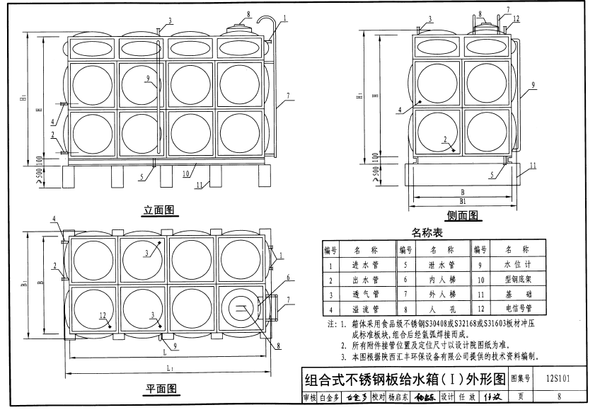 點擊下載:不銹鋼水箱圖集 12S101 PDF格式