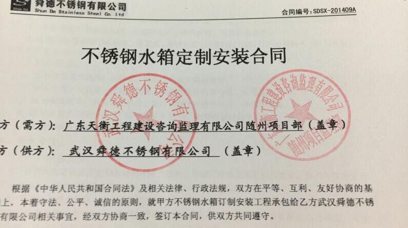 我公司與2014年10月5日安裝完廣東天衡工程建設324噸不銹鋼水箱,廣東天衡工程建設咨詢監理有限公司成立于2000年,是具有獨立法人資格的甲級監理企業。公司名稱取意于“天欲久遠,衡以為道”,天衡監理(TIAN HENG JIAN LI)的縮寫圖案定義為企業標志。目前,公司是中國建設監理協會、廣東省建設監理協會、湖北省建設監理協會、安徽省建設監理協會、貴州省建設監理協會、青海省建設監理協會會員、武漢建設監理協會會員及監事單位 ,并通過GB/T19001-2008 質量管理體系、GB/T24001-2004環境管理體系、GB/T28001-2001職業健康(安全)管理體系認證;公司先后多次被評為省、市級先進單位、文明施工管理先進單位及行業AAA級信譽..