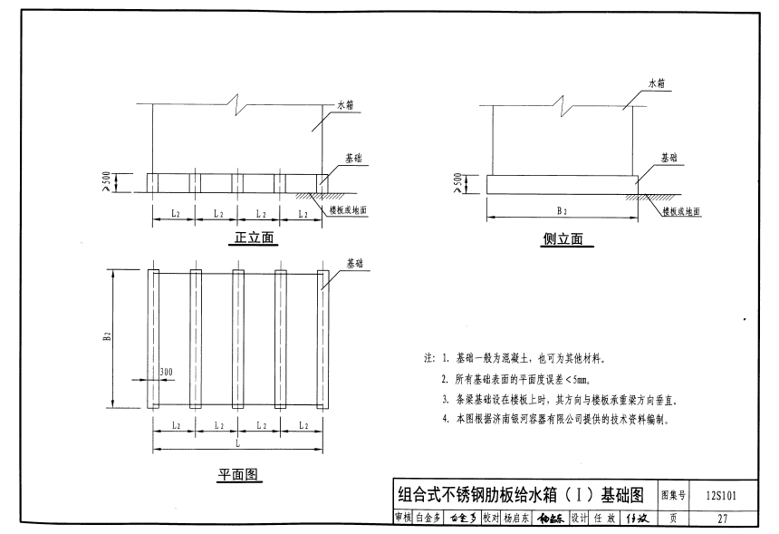 組合式不銹鋼助板給水箱(一)基礎圖: