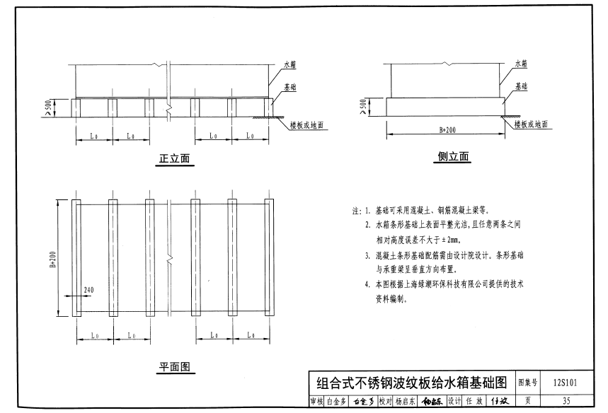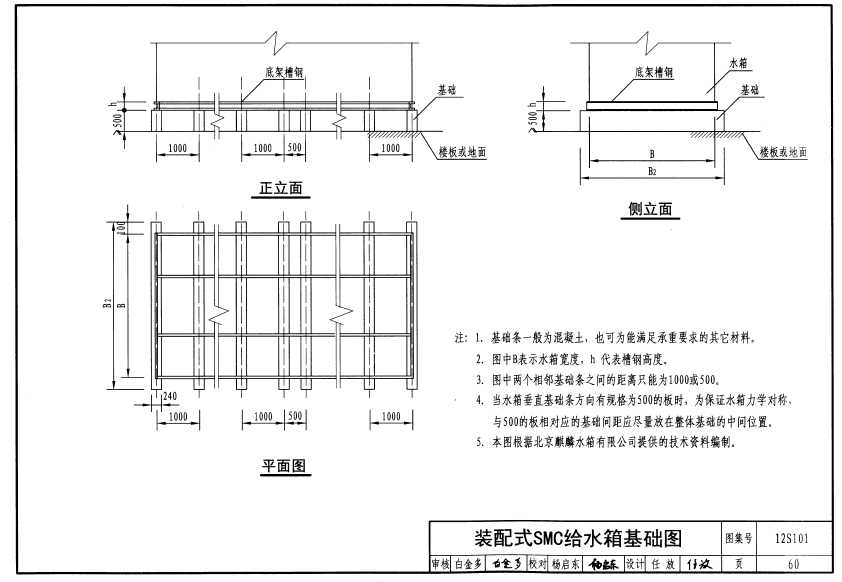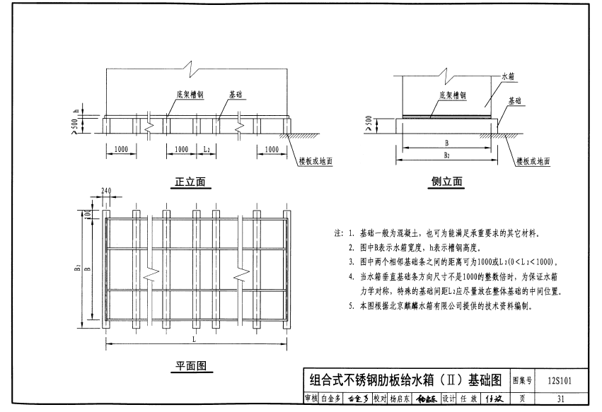 組合式不銹鋼助板給水箱(二)基礎圖: