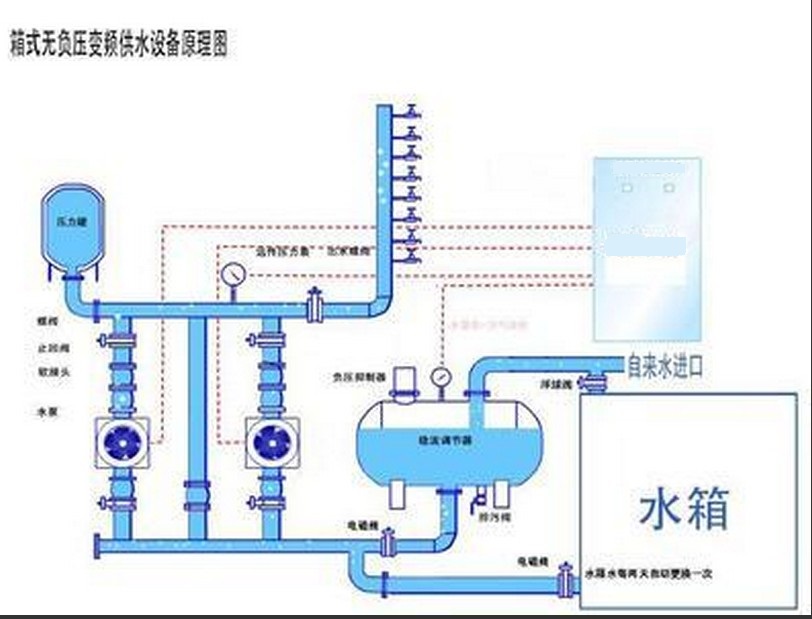 無負(fù)壓變頻供水設(shè)備材料選擇SUS304板材,并且SUS304板材中的鎳含量應(yīng)大于等于8。管道采用SUS304材質(zhì),壁厚不低于3.0mm。藝優(yōu)良、外觀精美,經(jīng)久耐用,價格合理。設(shè)備完全密封,不受二次污染,保證水質(zhì)清潔衛(wèi)生。