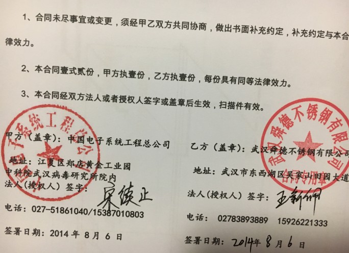 武漢舜德不銹鋼有限公司與2014年8月25日安裝完成中國電子系統技術有限公司420噸不銹鋼水箱