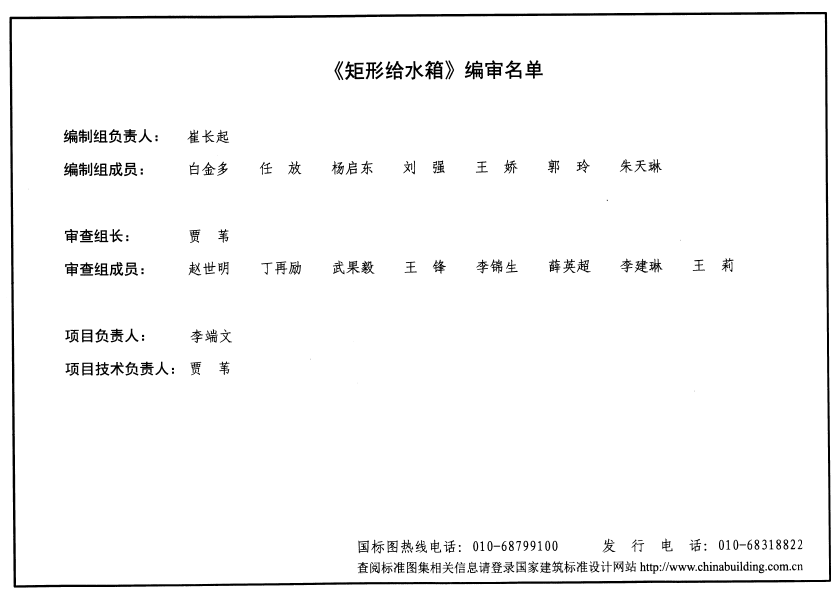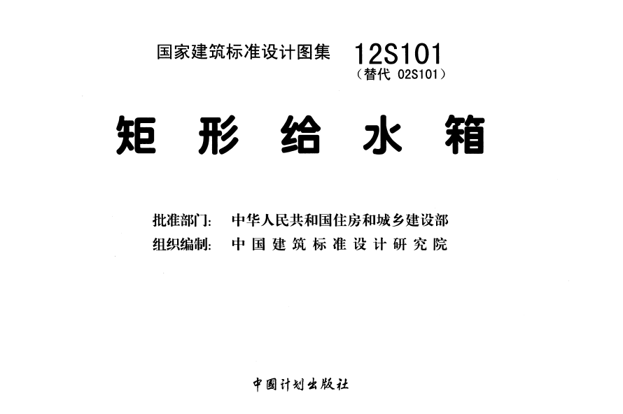 答:參考國家建設標準設計圖集12S101矩形給水箱。