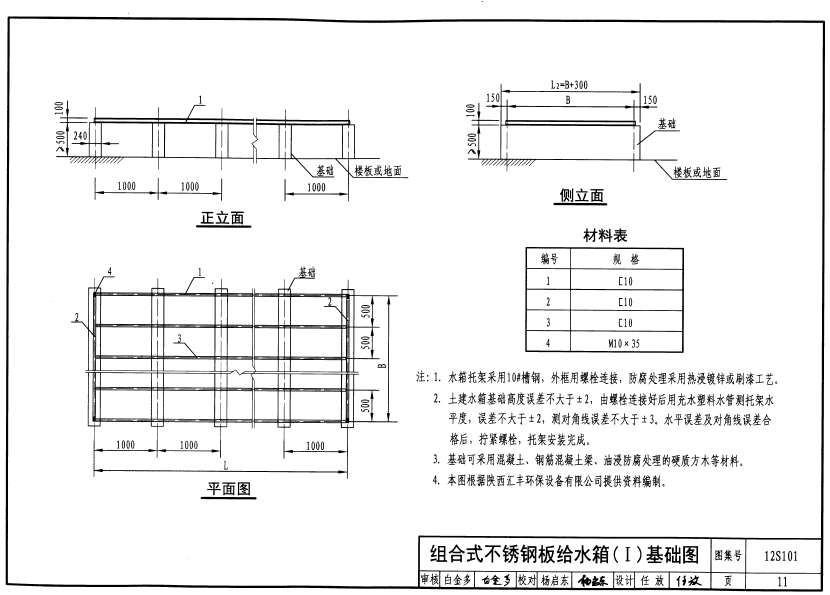不銹鋼水箱底部基礎出料圖集介紹說明