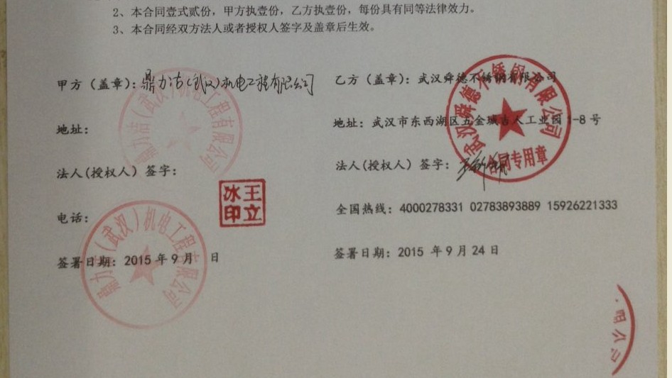 我公司與2015年10月份與鼎力潔(武漢)機電工程有限公司王總簽約合作伙伴關系,連續4年有十幾次不銹鋼水箱的合作。