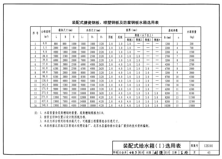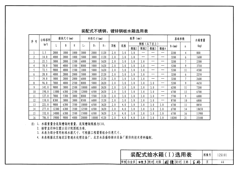 裝配式不銹鋼水箱圖集一 (選用表) 12S101