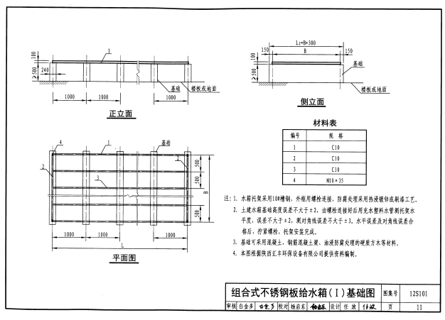 12S101組合式不銹鋼水箱圖集(基礎圖)