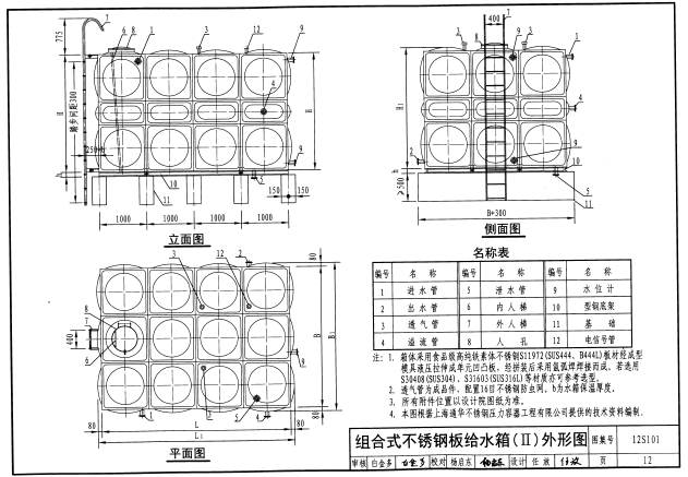 12S101方形不銹鋼水箱圖集